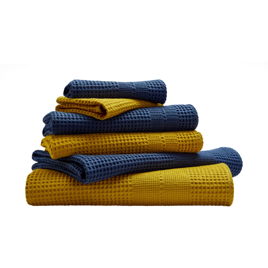 bio-waffelpique-geschenkset-6-teilig-in-curry-azurblau-blau-gelb-von-cotonea-groesse-2x-35x50-cm-2x-50x100-cm-2x-70x140-cm-1a.webp