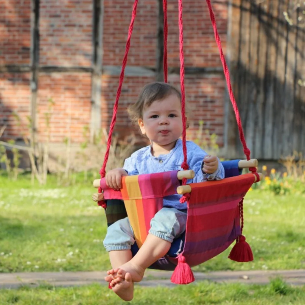 baby-schaukel-rainbow-in-gelb-rot-lila-blau-muster-streifen-von-globo-groesse-28x26-cm-1b.webp