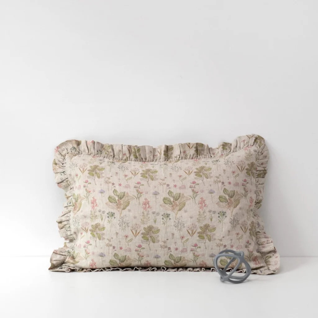 leinen-baby-kinder-bettwaesche-botanik-kissenbezug-mit-rueschen-in-creme-rosa-gruen-braun-muster-botanik-von-linen-tales-groesse-35x55-cm-1a.webp