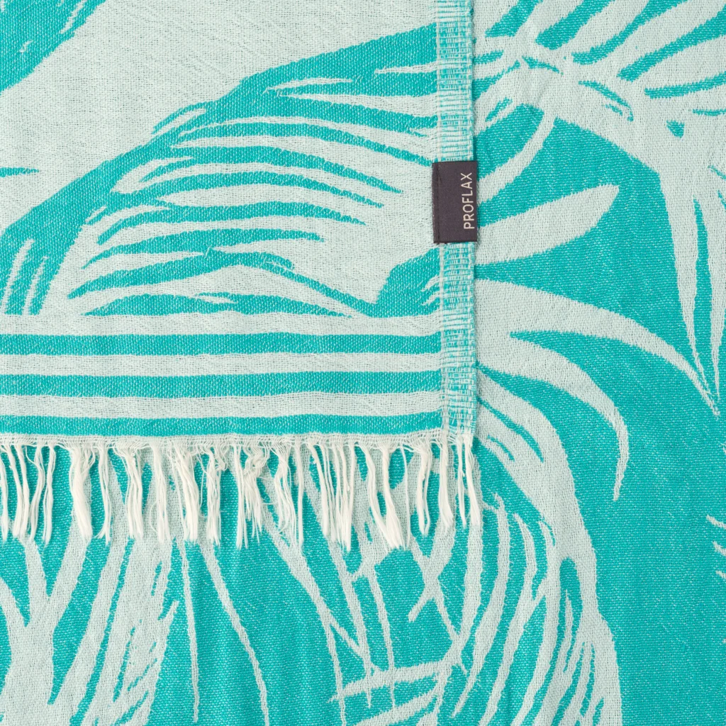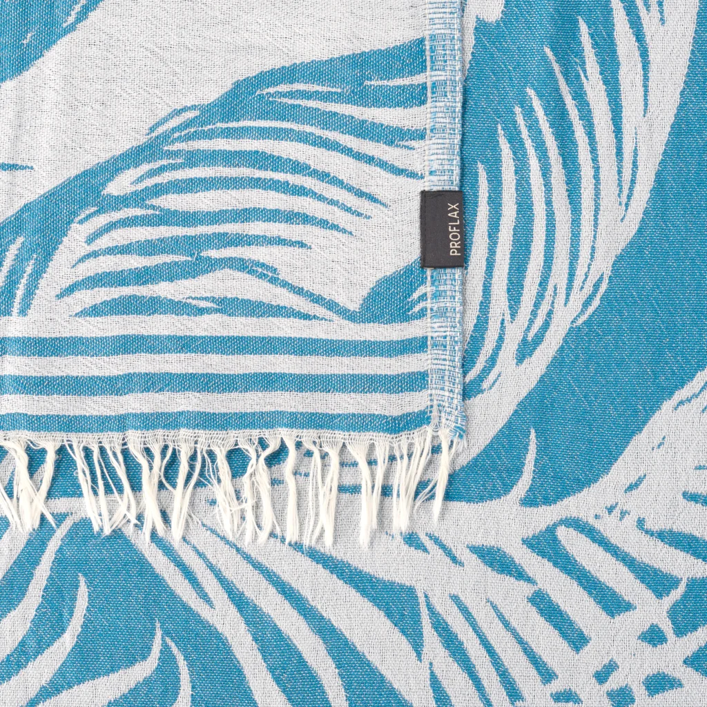 plaid-mit-palmenblatt-muster-in-tuerkis-blau-muster-palmenblatt-von-proflax-groesse-130x200-cm-1b.webp